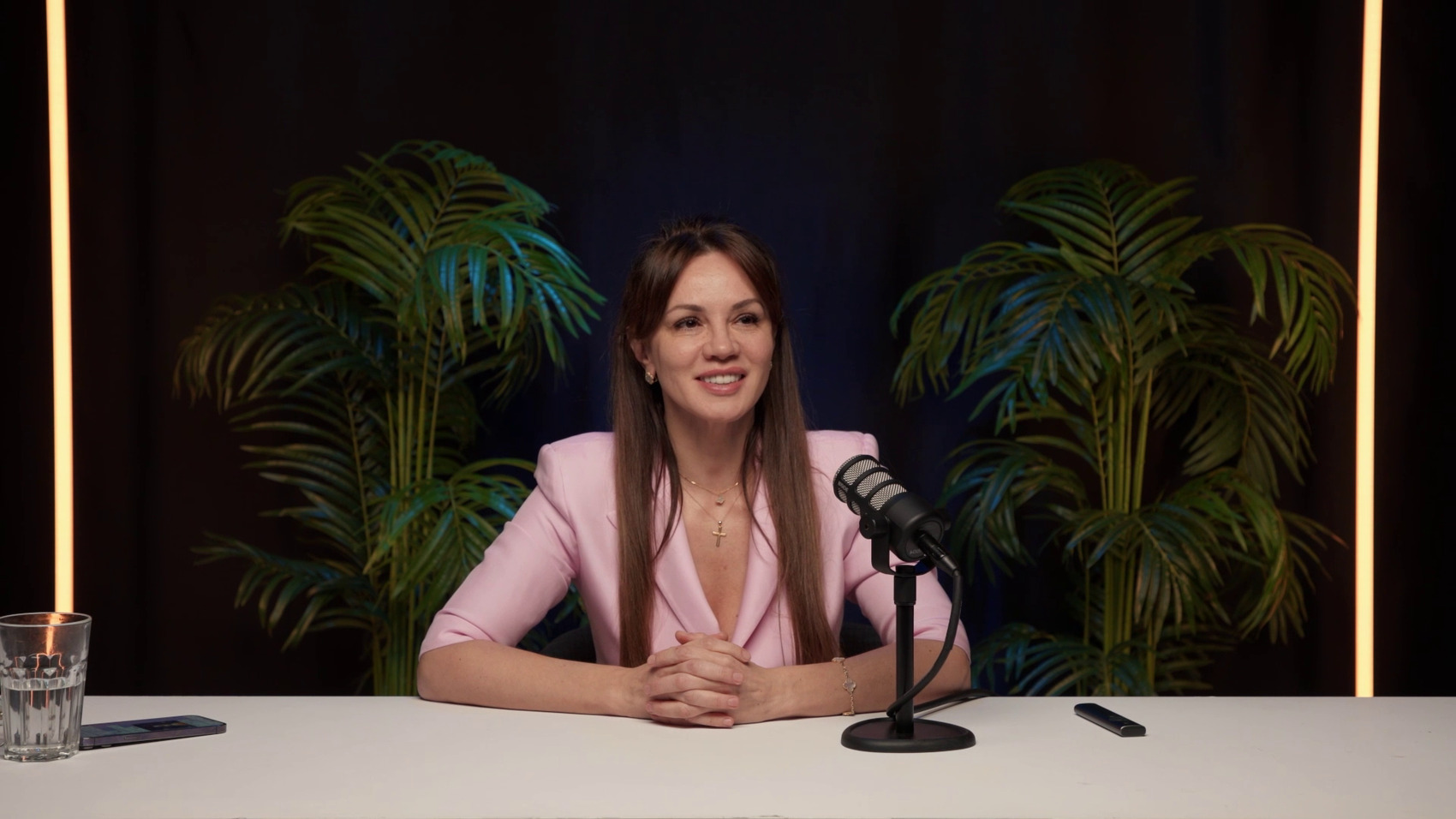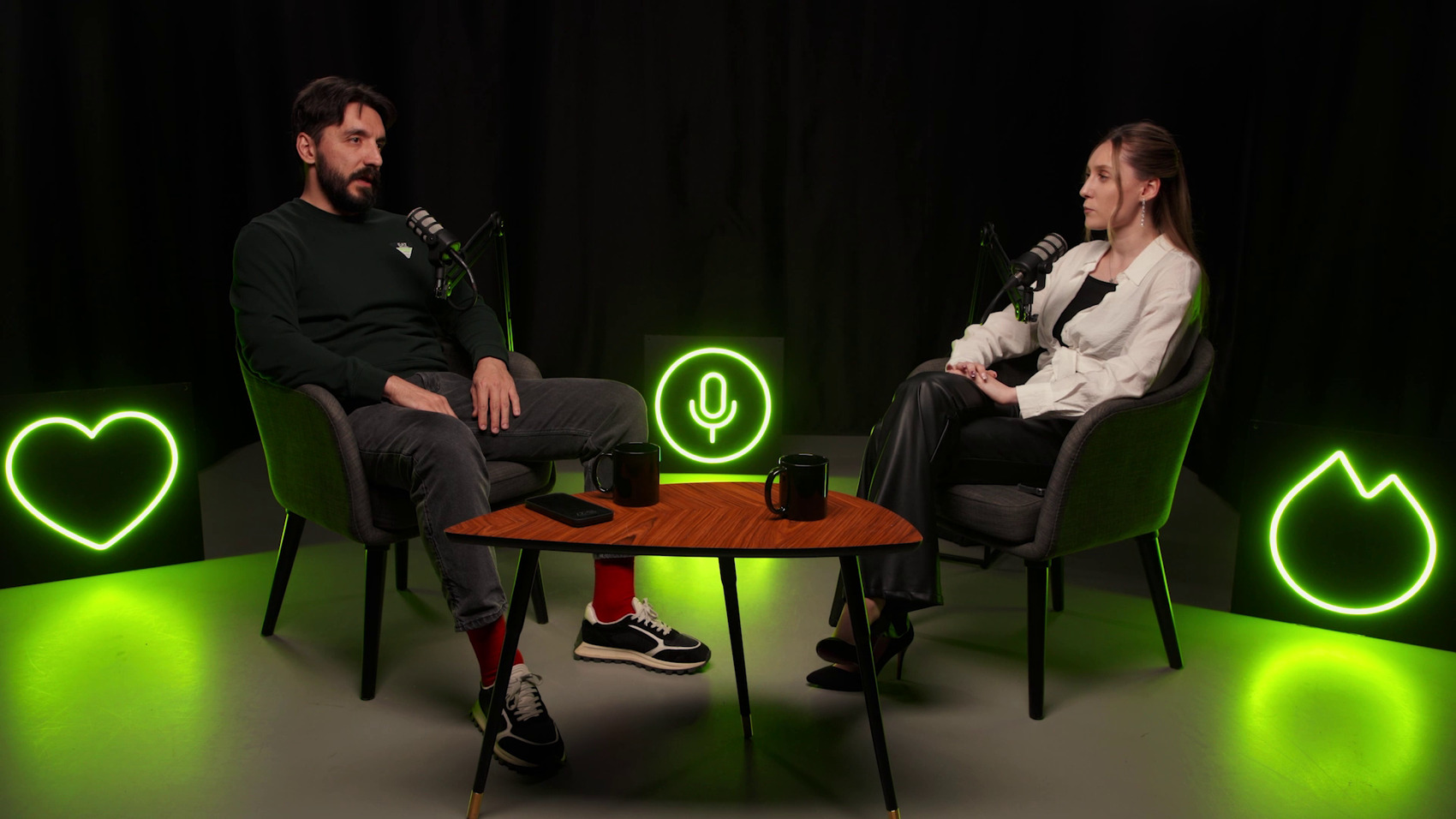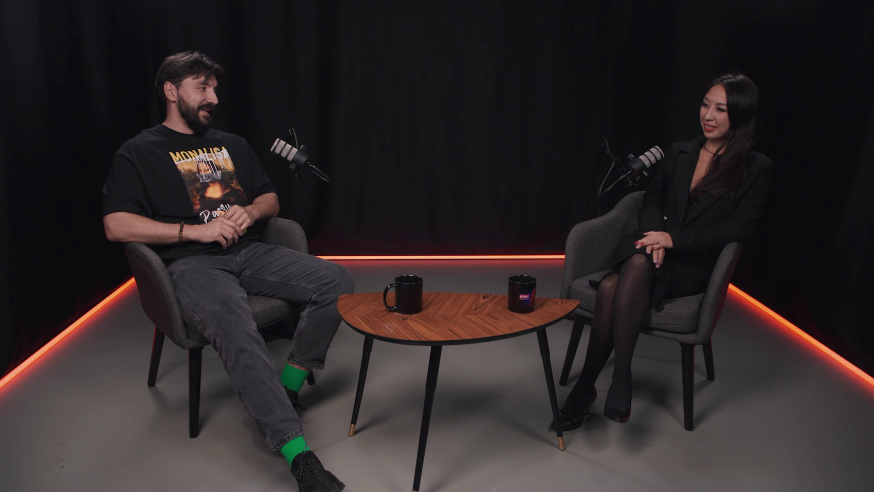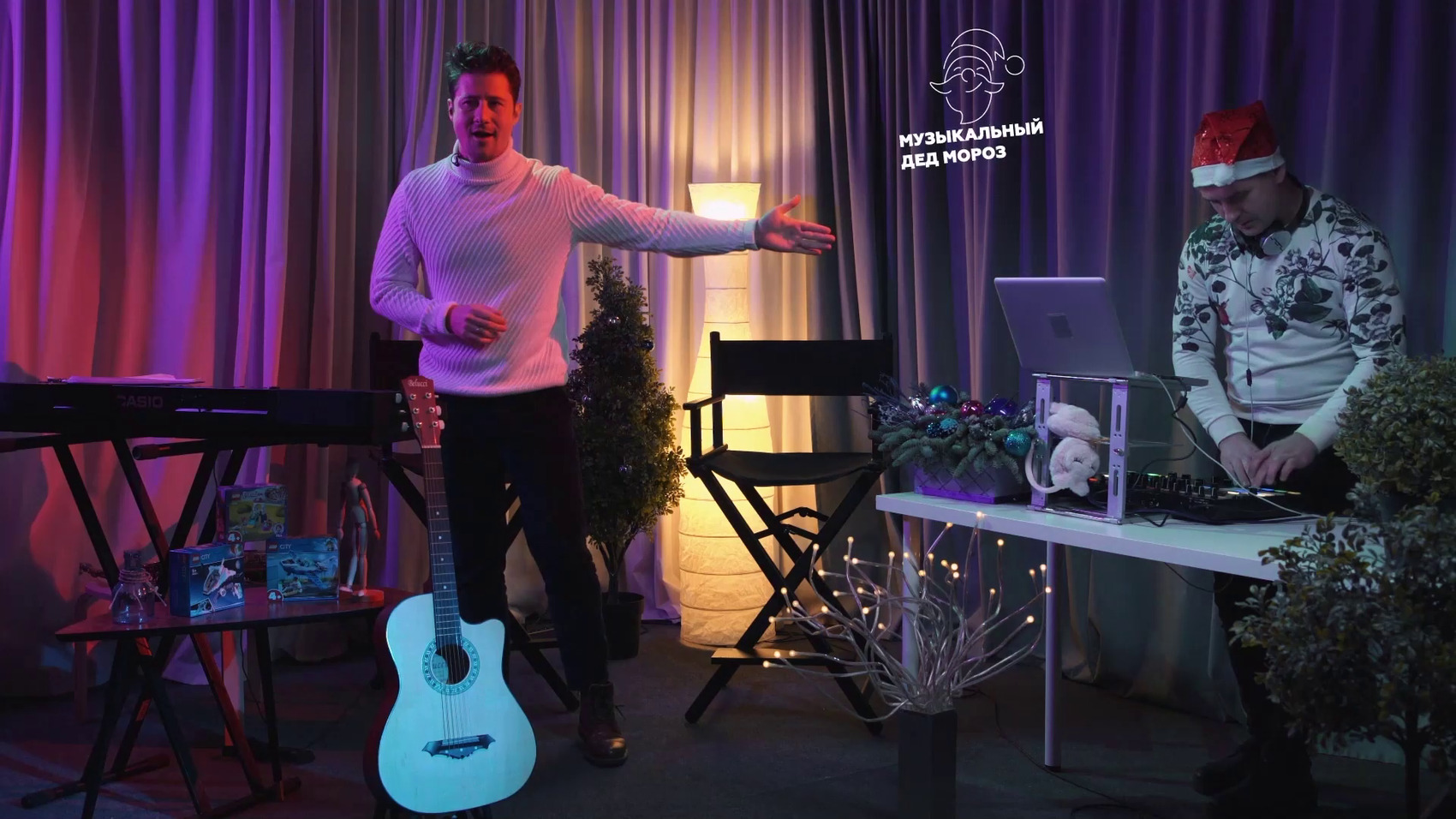 В этой комнате также можно провести съемки и трансляции, например, интервью или простой живой беседы в готовых декорациях.